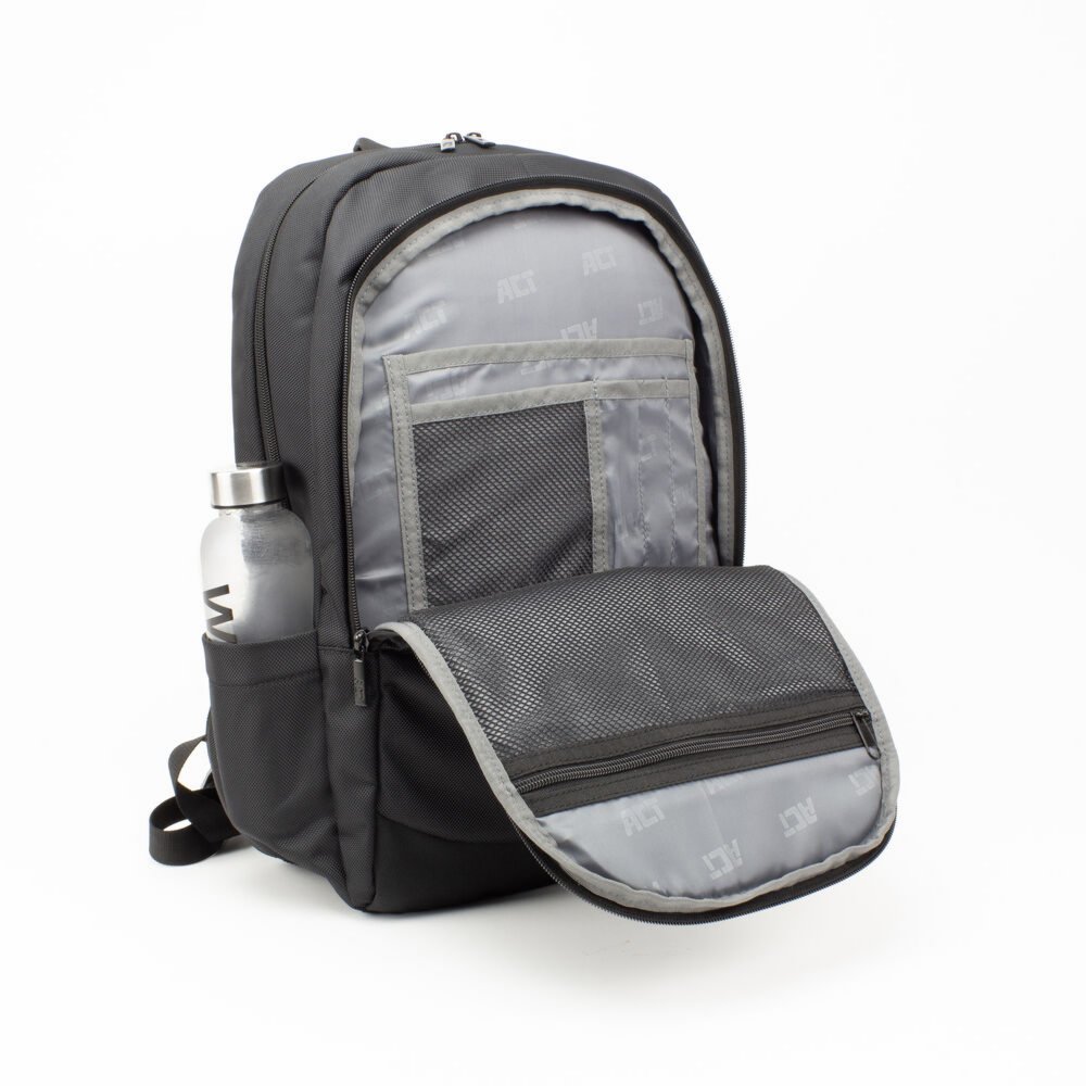 De AC8565 Suburb laptop rugzak is je dagelijkse accessoire wanneer je onderweg bent naar je werk, school of op reis. Deze veelzijdige rugzak biedt genoeg ruimte voor het opbergen van je 15,6 inch laptop, tablet, documenten, waterfles en meer. De verstelbare schouderbanden en het gevoerde rugpaneel zorgen voor een comfortabele pasvorm. Bevestig de rugzak aan een koffer met de trolleyband. De AC8565 is gemaakt van waterafstotend rPET-materiaal: gerecyclede en hergebruikte plastic flessen.
