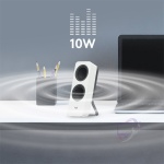 Het vermogen van 5 watt RMS/10 watt piekvermogen zorgt voor kamervullend geluid uit het ontwerp met vier drivers, waarvan de twee actieve drivers voor de perfecte balans tussen middentonen en hoge tonen zorgen, en twee passieve radiators instaan voor de bas.